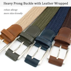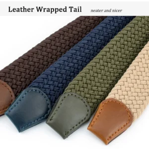 Leather Wrapped Casual Jeans Web Fabric Canvas Stretch Braid Elastic Woven Belt for Men Women Golf