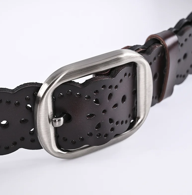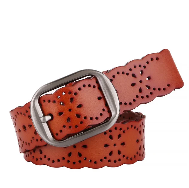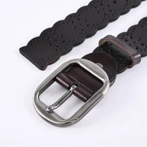 Casual Pants Jeans Belt 1.5 Inch Vintage Women’s Holes Hollow Genuine Leather Belt with Alloy Pin Buckle