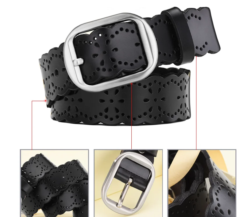 | Product Name: | Casual Pants Jeans Belt 1.5 Inch Vintage Women’s Holes Hollow Genuine Leather Belt with Alloy Pin Buckle |