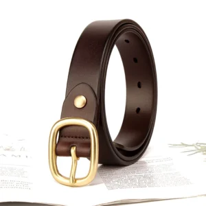 Classic Formal Simple Women Top Grain Leather Belt with Solid Brass Prong Buckle