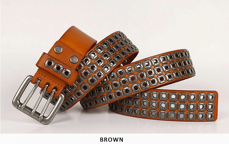 | Product Name: | Custom Cowboy Metal Eyelets Grommets Punk Studded Western Genuine Leather Belt for Men |
