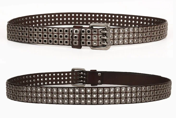 Custom Cowboy Metal Eyelets Grommets Punk Studded Western Genuine Leather Belt for Men