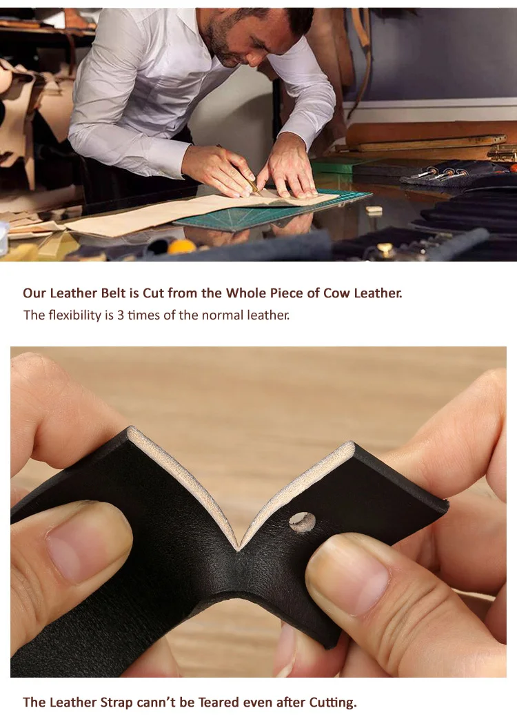 The material of our leather belts includes full grain leather, top grain leather,split leather,bonded leather and fake leather.