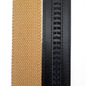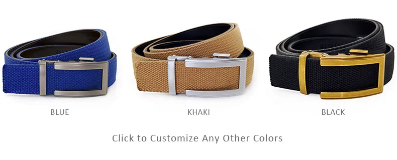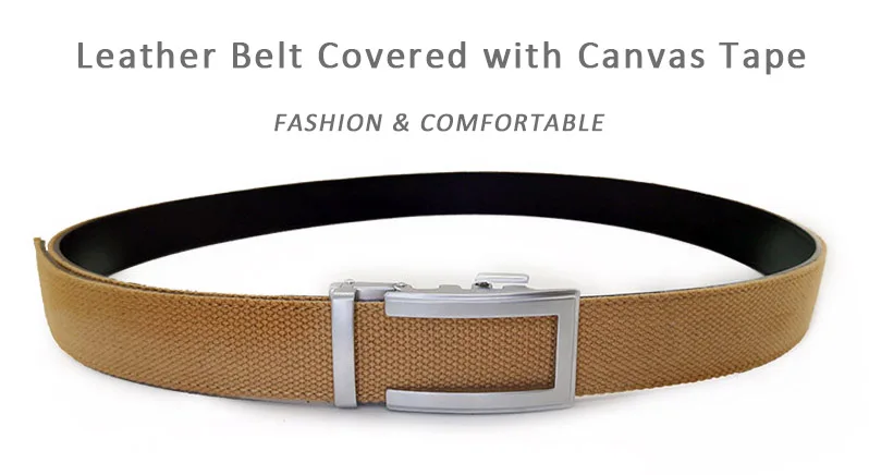 | Product Name: | Customize Color Genuine Leather Canvas Ratchet Belt Strap Covered with Fabric Tape |