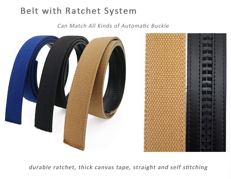 Customize Color Genuine Leather Canvas Ratchet Belt Strap Only Covered with Fabric Tape