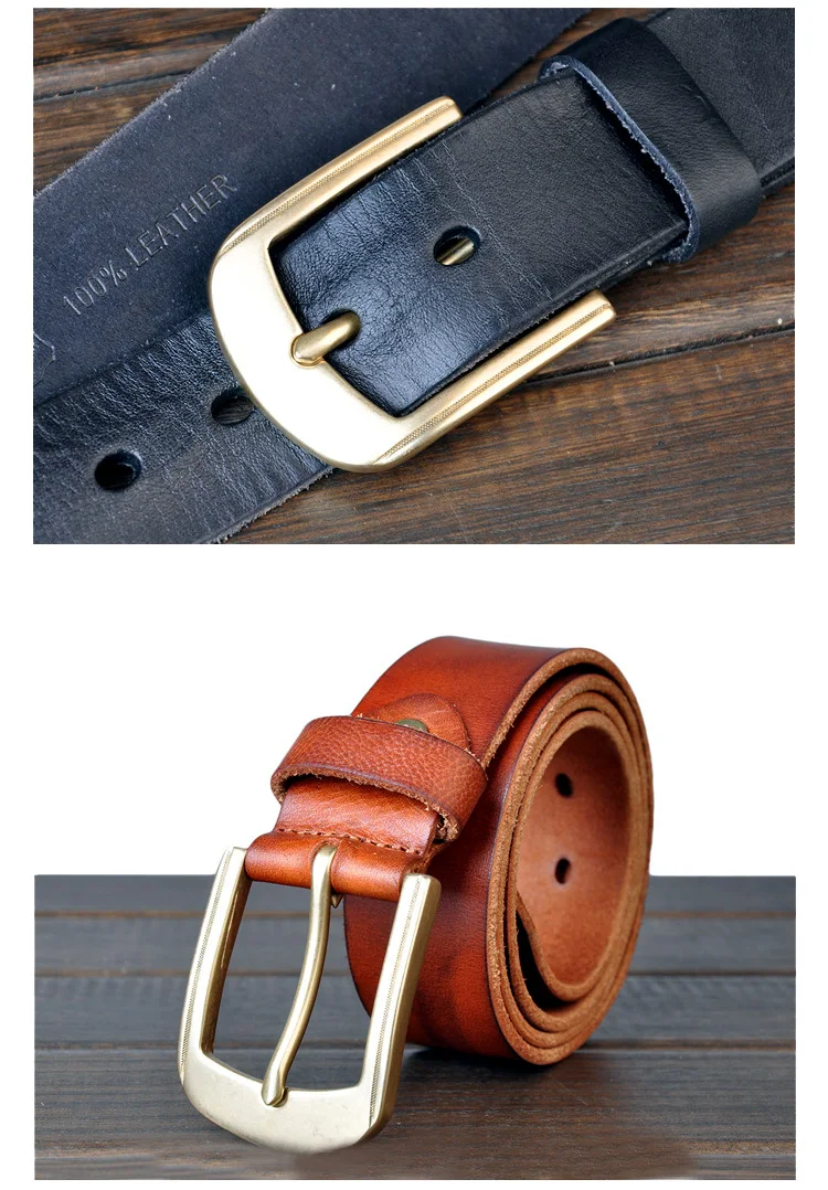 Men’s Washed 100% Italian Cow Leather Belt With Anti-Scratch Solid Brass Buckle