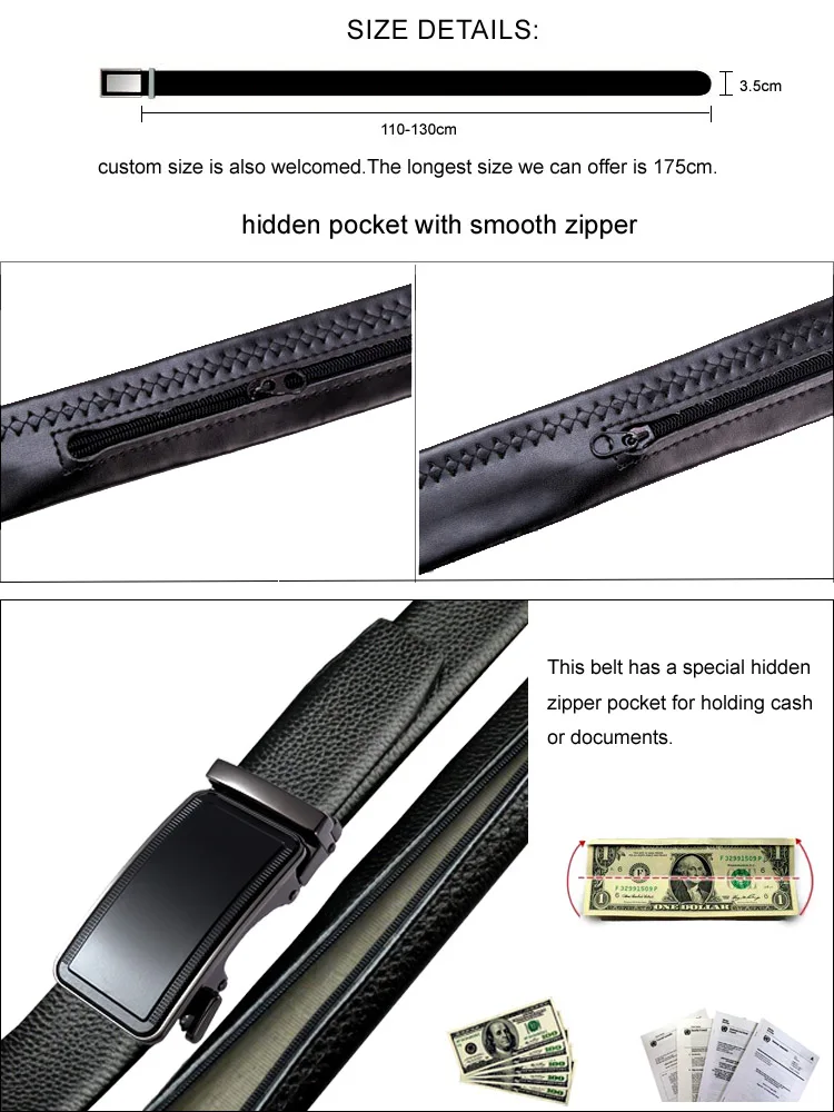 | Product Name: | Security Waist Ratchet Hidden Pocket Leather Travel Money Belt with Automatic Buckle |