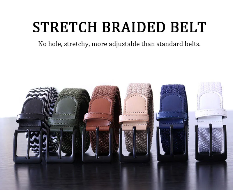 | Product Name: | Unisex Casual Sports Golf Jeans Pants Shorts Fabric Canvas Men Elastic Braided All Black Stretch Woven Belt |