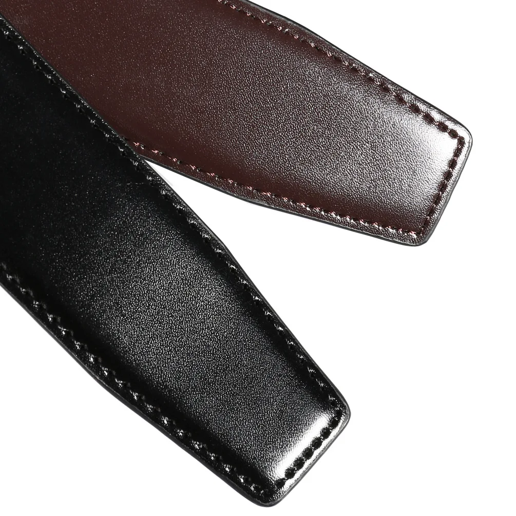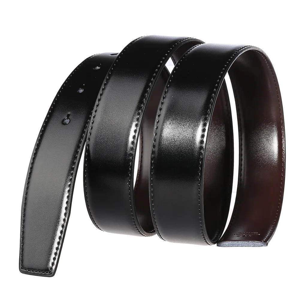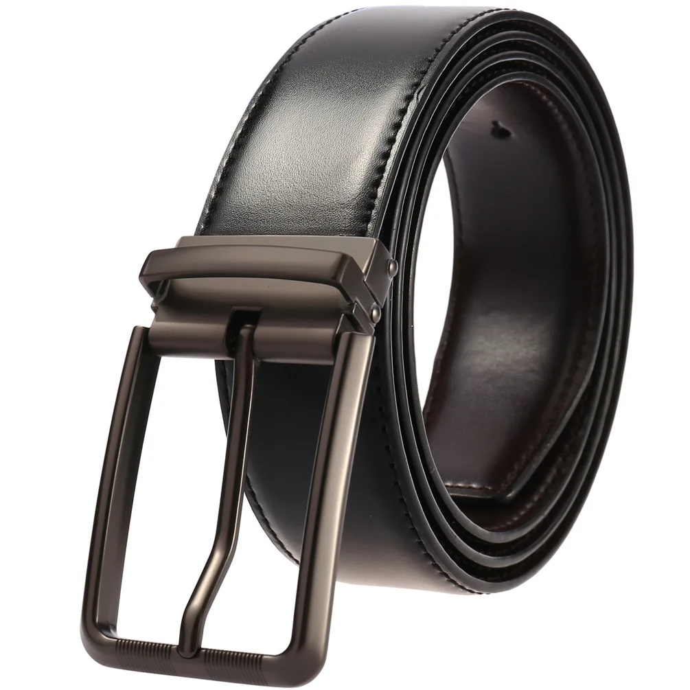 Vintage Shiny Metal Pin Buckle Black Brown Two tones Cowhide Leather Dress Belt for Men