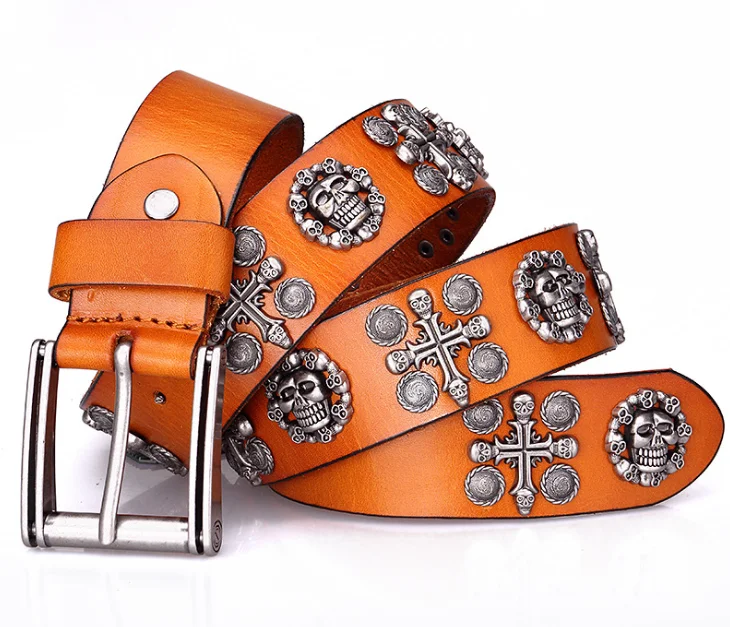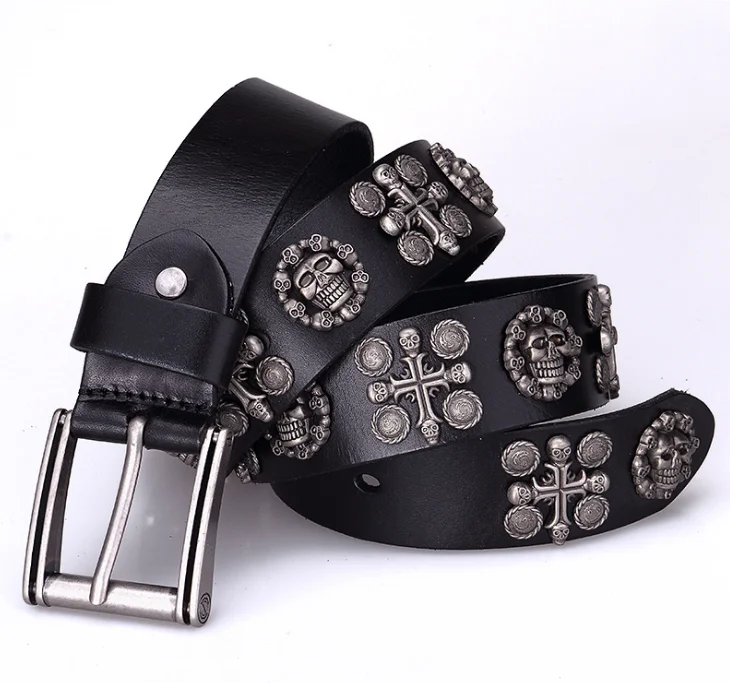 | Product Name: | Western Cowboy Cowgirl Top Grain Cow Hide Punk Studded Genuine Leather Skull Belt |