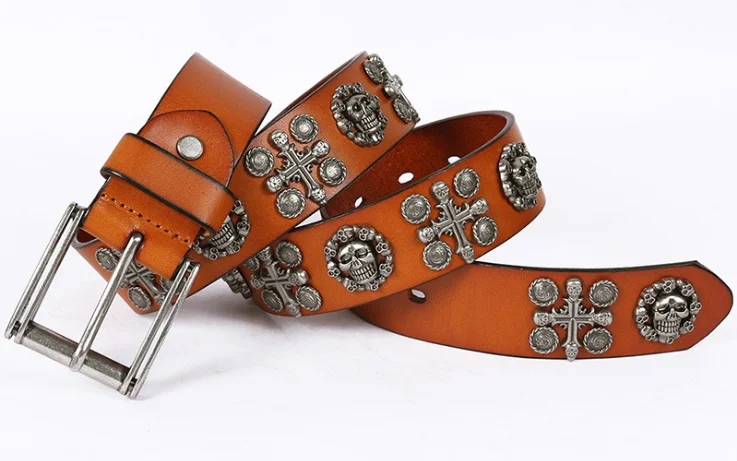 Western Cowboy Punk Genuine Leather Belt