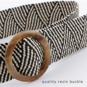 Wholesale Fashion Wide Waist Bohemia Boho PP Straw Woven Elastic Stretch Belt for Women Dress with Resin Buckle